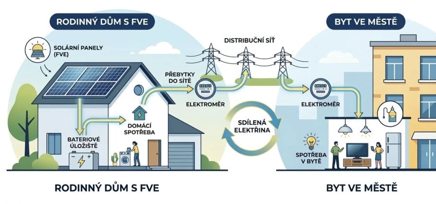 Představte si, že vaše elektrárna na střeše chalupy vyrábí v poledne maximum, ale vy nejste doma. Tyto přebytky si jednoduše „pošlete“ do svého bytu ve městě nebo je darujete/prodáte sousedovi. V místě spotřeby pak můžete mít silovou elektřinu zdarma (platíte pouze regulované poplatky za distribuci).